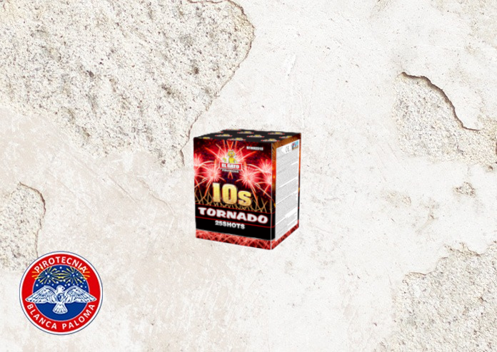 - Efecto: Batería de troncos de colores a trueno de titanio con volcán de cracker.